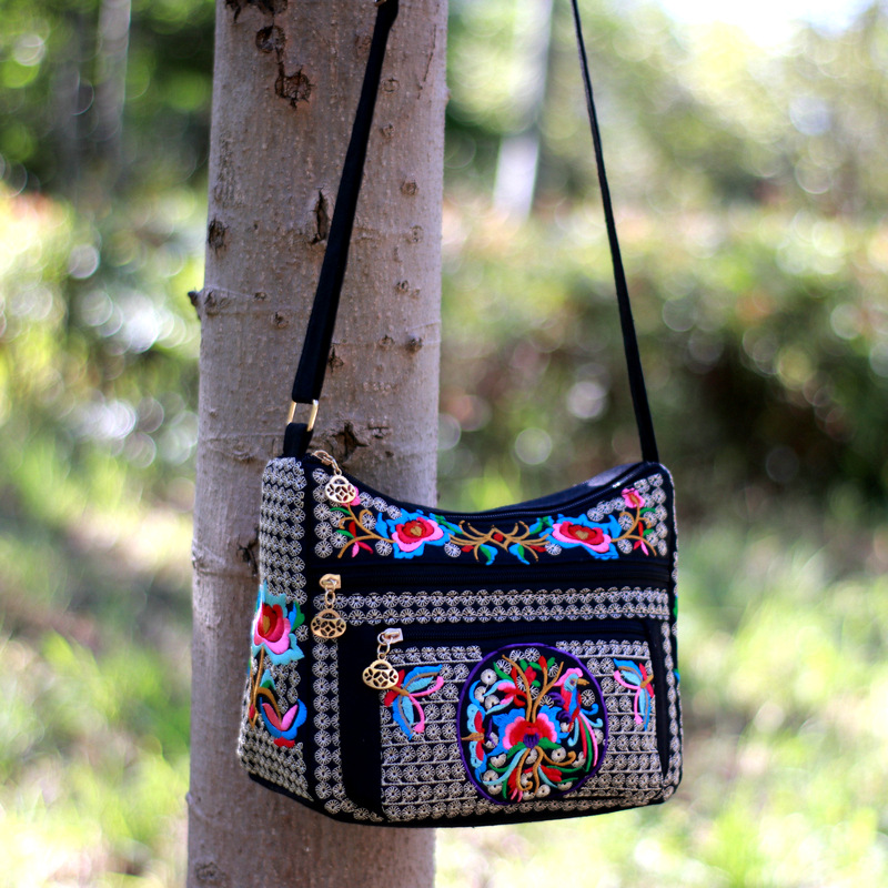 国境を越えた商品の供給源である新民族風刺繍は、女性バッグを斜めに掛けて、多くの旅行刺繍バッグを持っています。