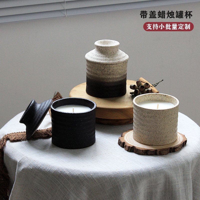 不规则粗陶香薰杯蜡烛空杯侘寂中古彩绘陶瓷烛台迷你桌面香氛摆件
