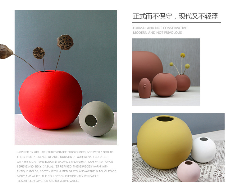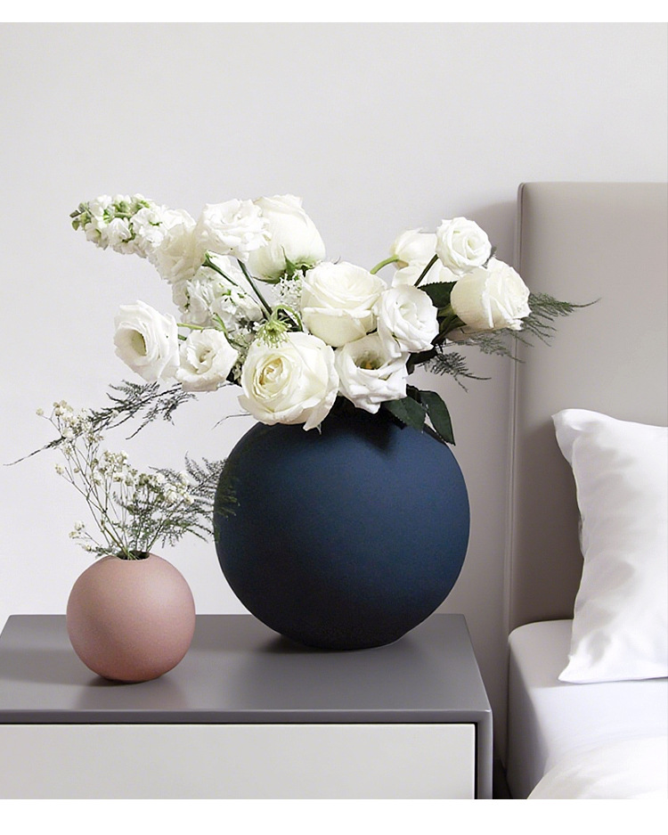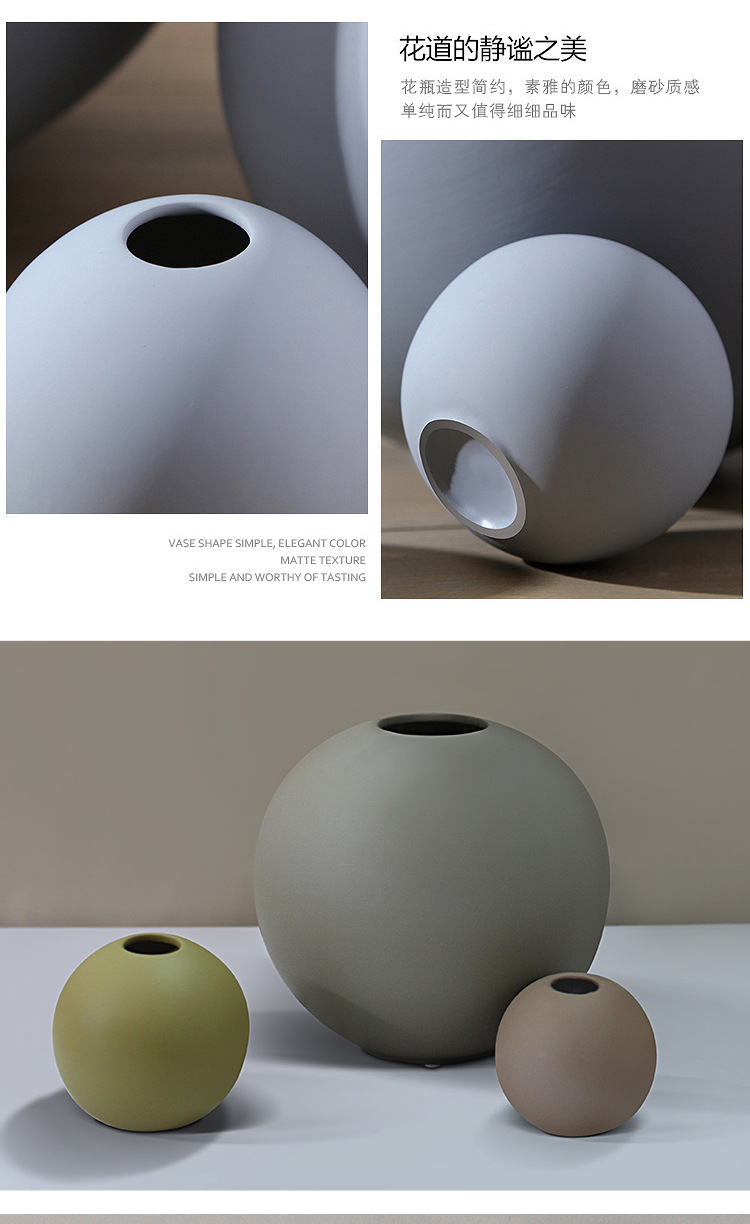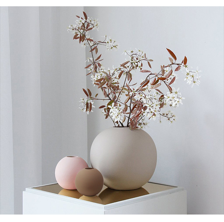 モランディ北欧ins陶磁器の置物の軽い豪華な小口の球形の花瓶の客間の生け花器の柔らかい装飾のアイデア
