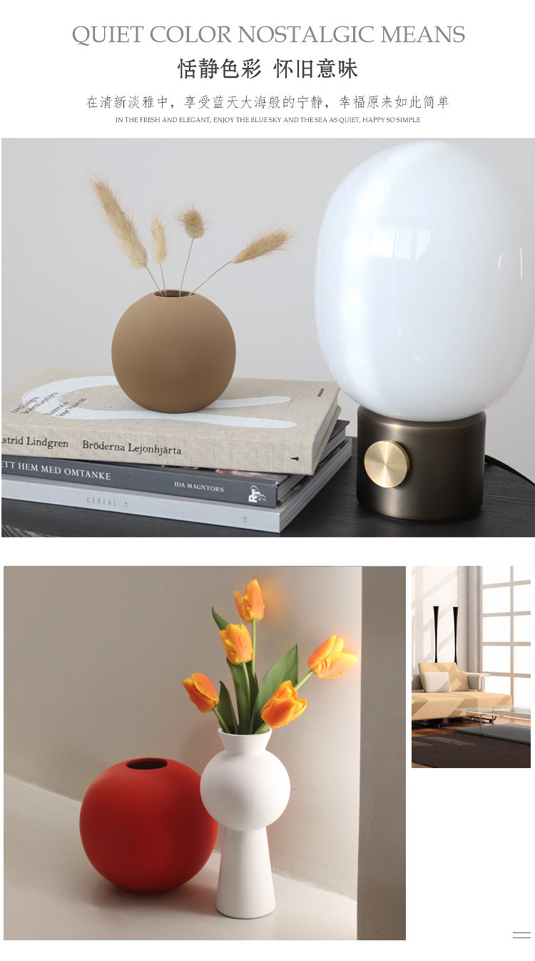 モランディ色シンプル北欧ins風陶磁器花瓶室内ソフト装飾品生け花花瓶装飾品