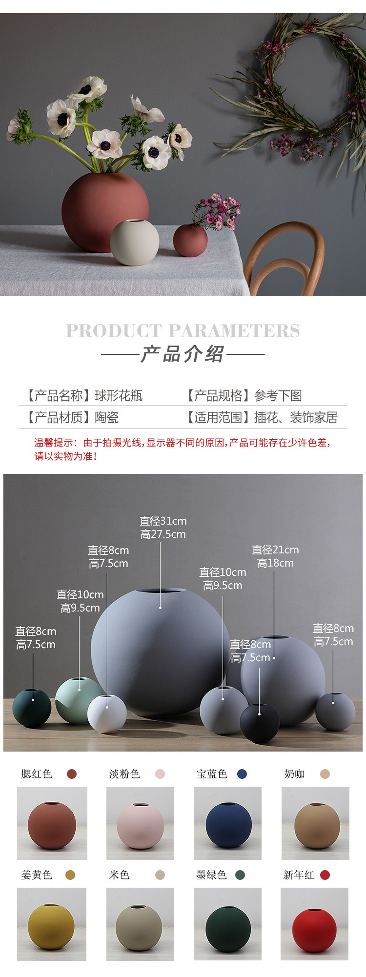 結婚式の装飾品、軽奢な北欧風セラミック製の赤い花瓶、新築祝い、室内装飾工芸品