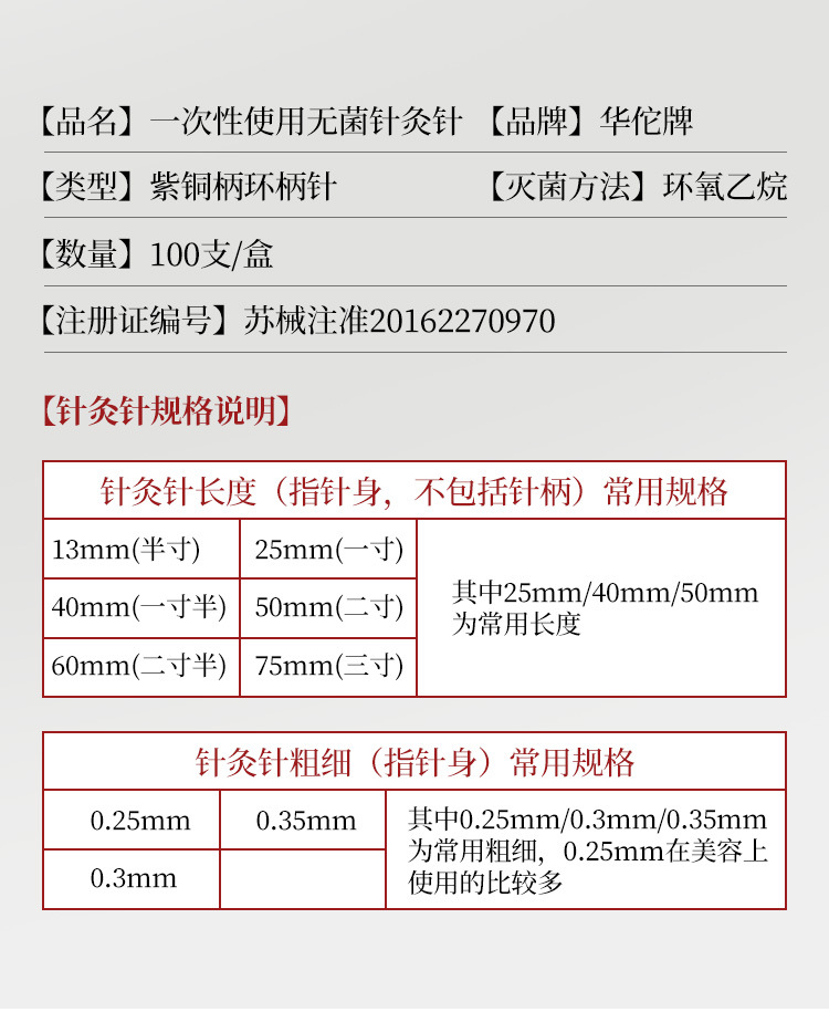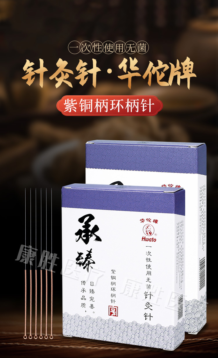 華侑一度に無菌鍼灸針を使って紫銅柄鍼灸針100本を独立してセットする