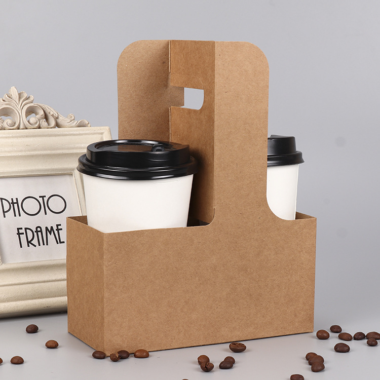 ポータブル使い捨て牛革段ボールカップホルダーミルクティーコーヒー紙コップテイクアウト包装袋シングルとダブル 4 カップホルダーベース
