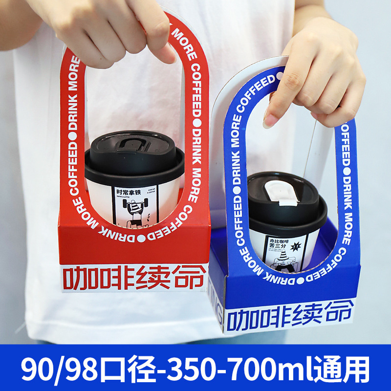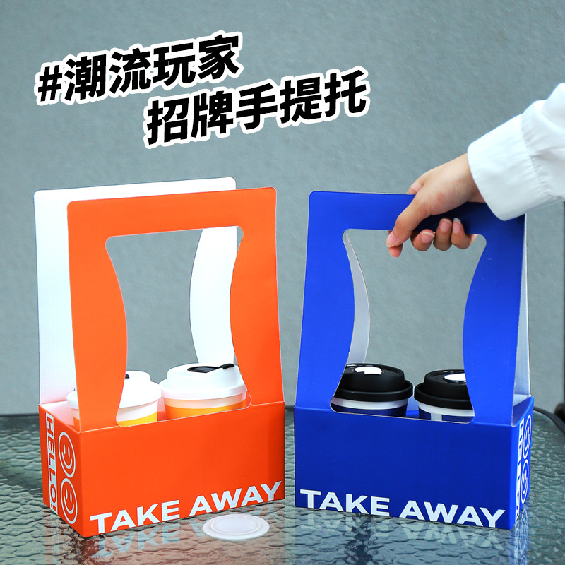 一次性手提杯托加厚咖啡饮料奶茶纸杯手提杯托外卖打包托盘定 制