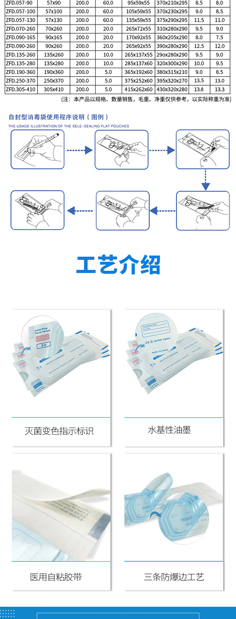 医療機器滅菌袋消毒使い捨て口腔機器粘着袋蒸気エチレンオキシド無菌自封
