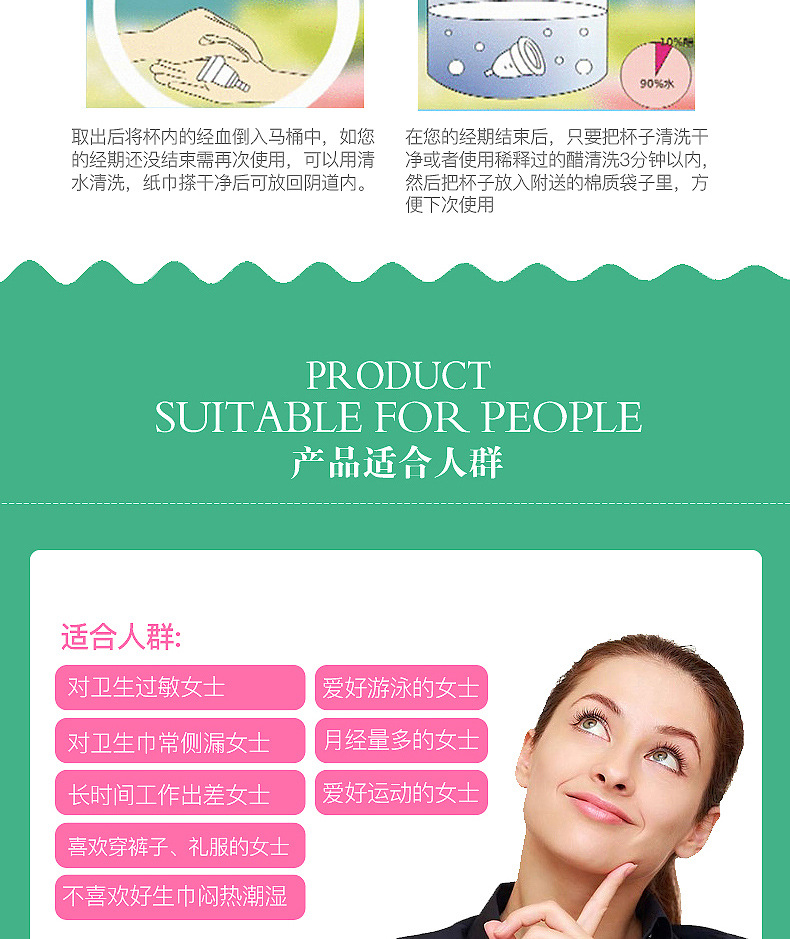 温馨提示:初次使用月经杯可能有些异物感是正常的,正常使用1~2天后一般就不会有异物感了。安心享受HeaLeanLo月经杯给您带来的惊喜,月经杯可以在您一个月事周期内安静守候在您的体内,无需取出。居家、旅游、出差的时尚宝贝。