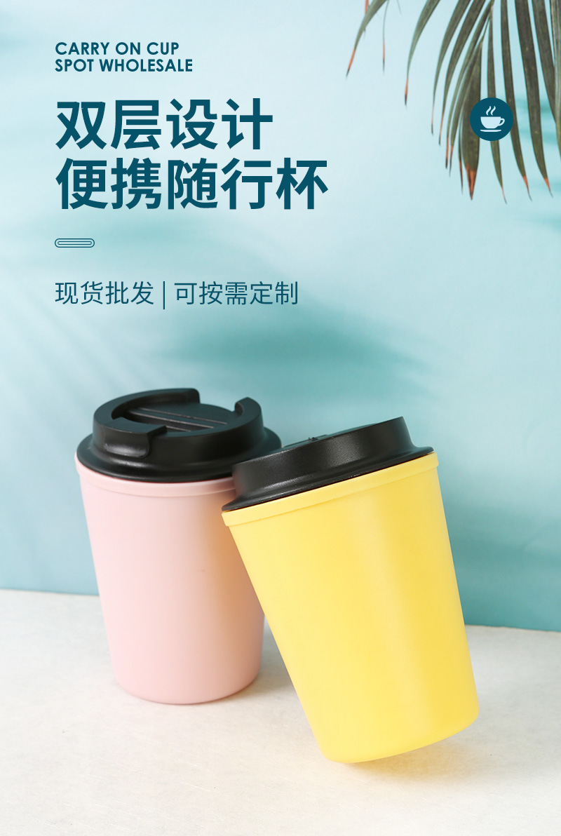 卸売り蓋付き二重密封コーヒーカップ創意携帯プラスチックカップ高颜値食品pp随行コップ