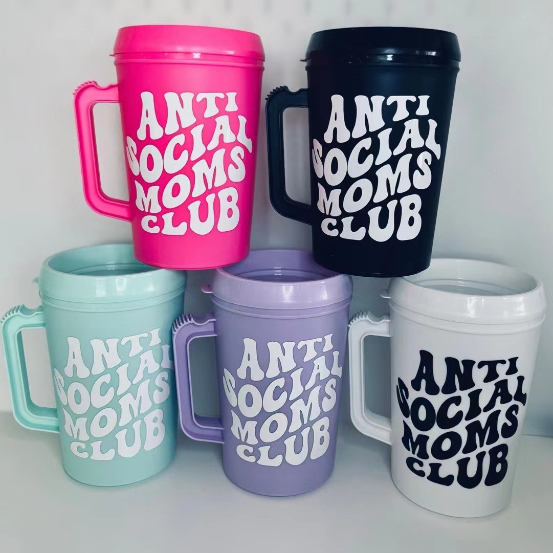 クロスボーダー34オンスアメリカ大容量旅行カップ自動車カップPP二層ハンドル付きストロー付きプラスチックカップマグカップ