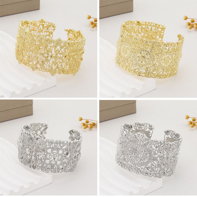 ホットな新しいクロスボーダーヨーロッパとアメリカのファッションシンプルな気質多用途中空花型ブレスレット誇張されたワイドバージョンオープンブレスレット