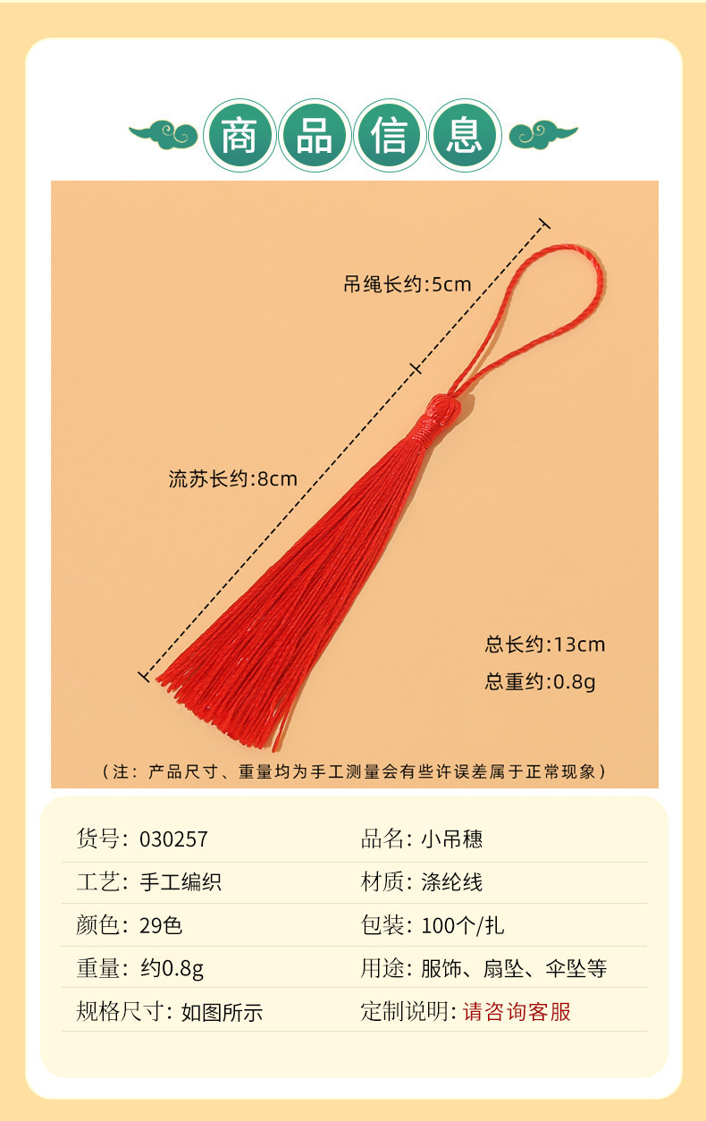8cm太った流蘇穂子小吊穂uディスク携帯ケース扇子ブックマーク流蘇ストラップポリエステル小流蘇卸売り