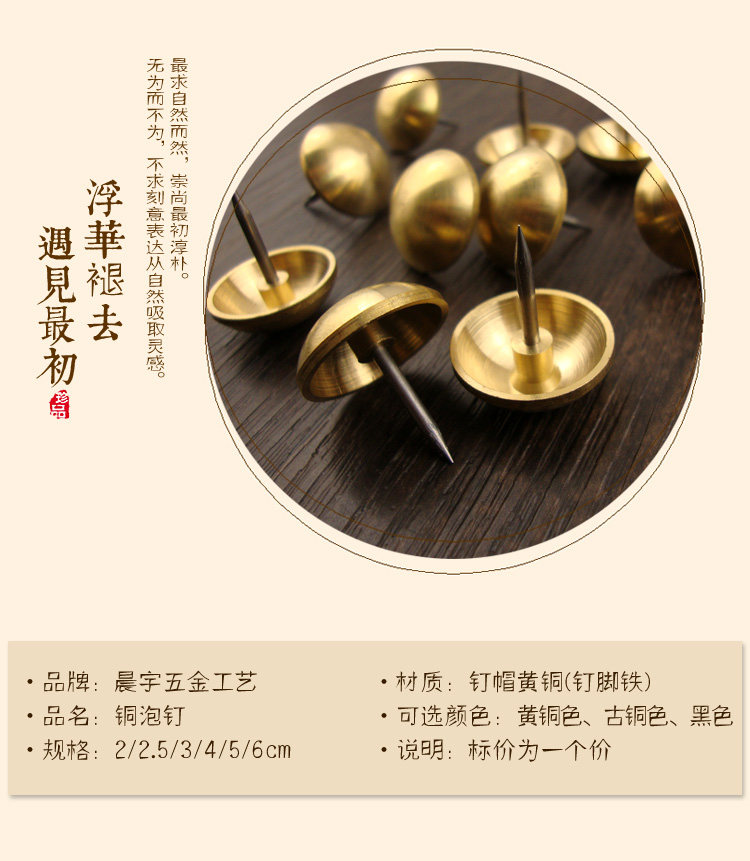 中国風の純銅製の装飾用鋲、銅鋲、鉄製の大きなドア用鋲、ガラスドア用装飾鋲、帽子鋲、金物、レトロな銅鋲