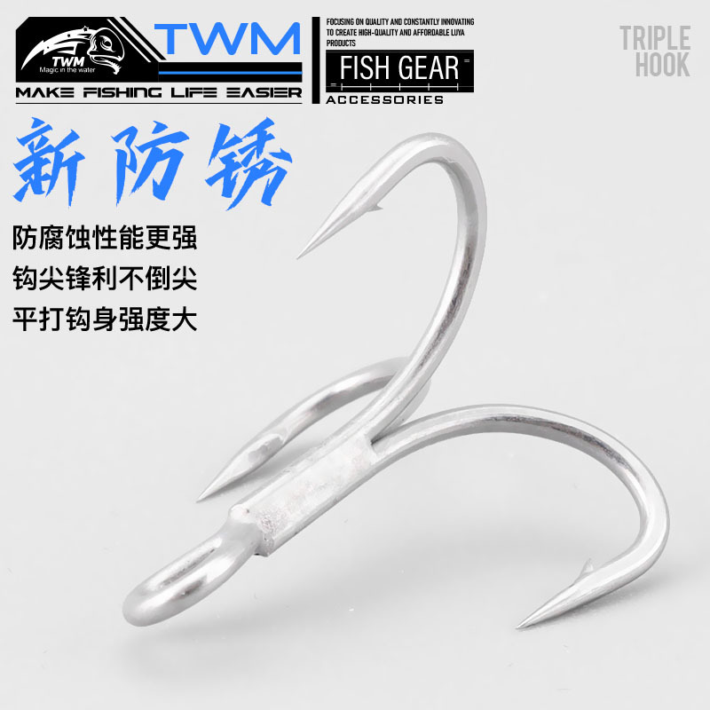 TWM 新型防錆3倍強化三本針釣り針 三爪針 ルアーフック ミノー ペンシル インターナルフック 釣り具