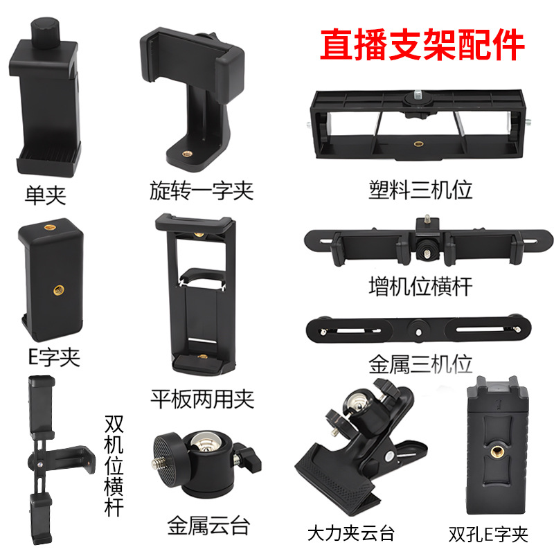 携帯電話ライブブロードキャストブラケットアクセサリー、タブレット兼用クリップ、強力クリップ、金属雲台、追加位置E字型クリップをメーカーから直接供給