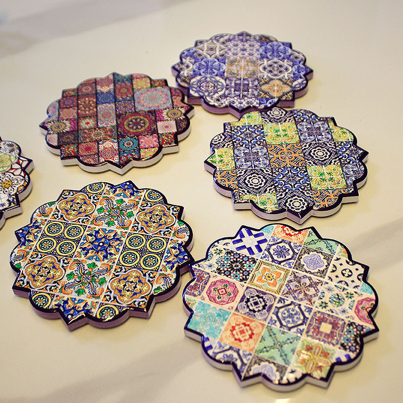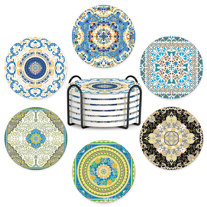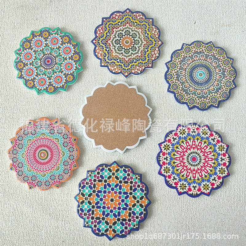 工厂新疆民族风桌面装饰餐垫陶瓷隔热垫曼陀罗杯垫陶瓷烫金杯垫