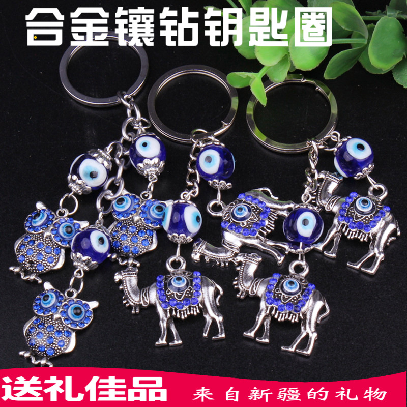 新疆の旅行の記念品の合金はラクダのフクロウのキーホルダーの青い目のキーホルダーのリュックサックの装飾品を入れます。