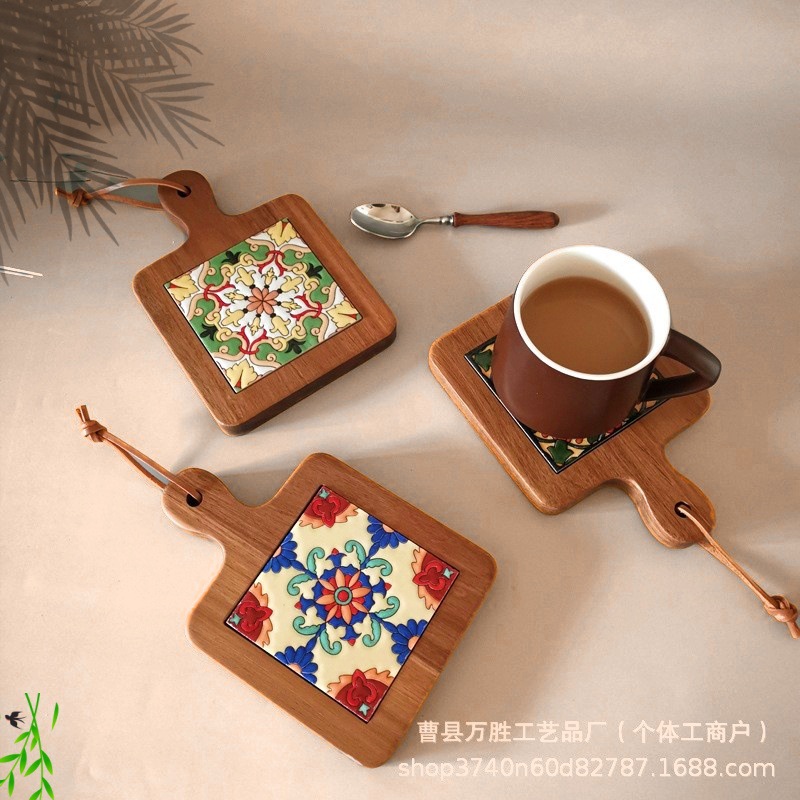 工場卸売エスニックスタイルセラミックコースターシンジゲンホットセールホットスタンピングセラミック断熱マットティーコースターテーブル装飾マット