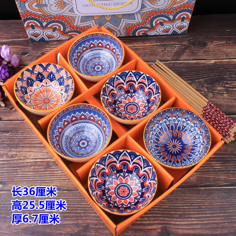 新疆民族風セット碗彩絵陶磁器碗皿セットヨーグルト茶碗ご飯皿スプーン皿食器