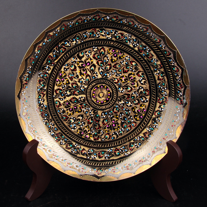 パキスタンの銅器の手作りのカラーポイントの壁の掛け皿の家庭のホテルのレストランの玄関は古銅の皿の置物をまねます。
