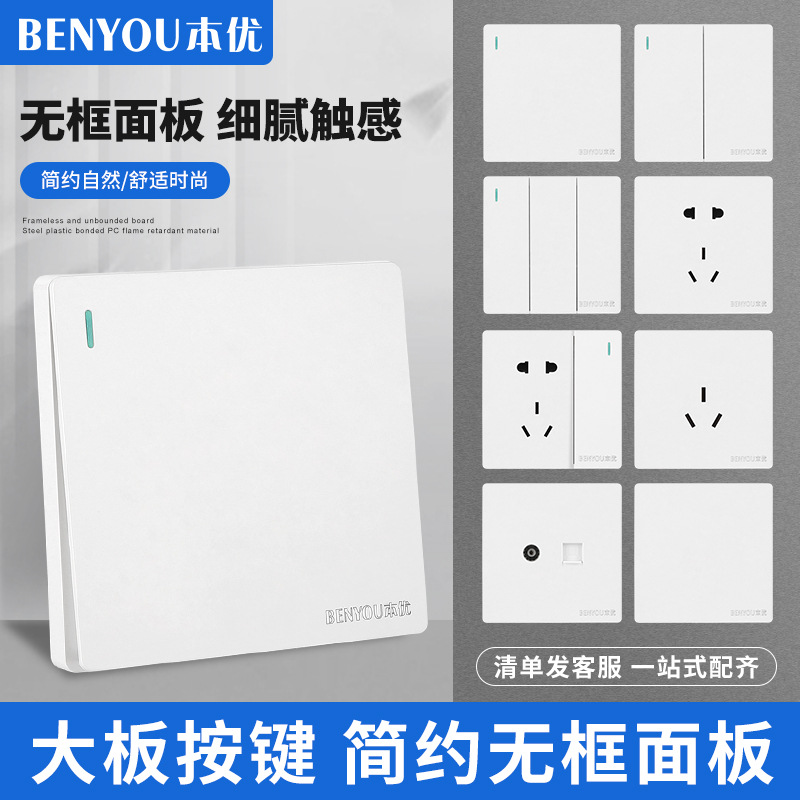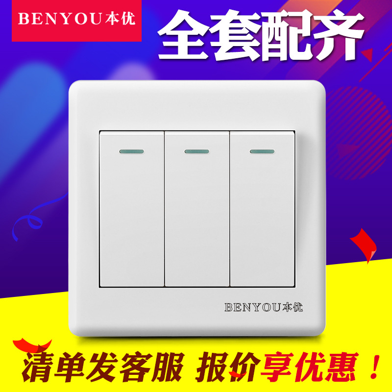 本優86型暗装壁スイッチソケットパネル三開単制御家庭用三位三連単制御電源3開