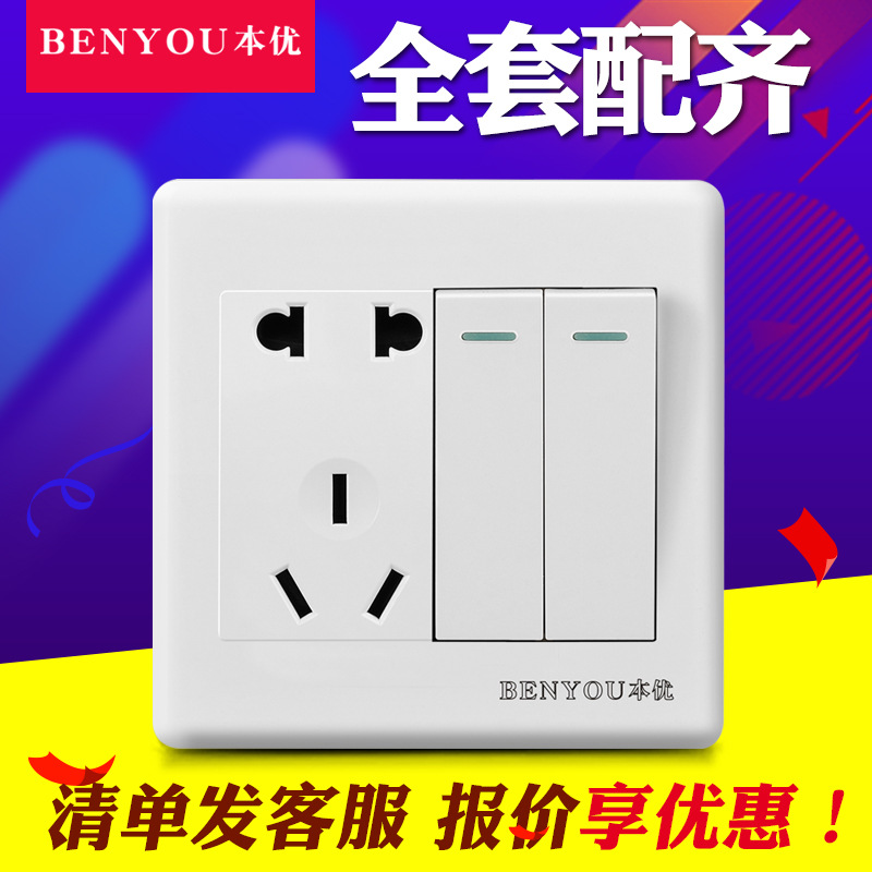 本優86型暗装壁スイッチソケットパネル二開五孔二重制御二開五孔二重開二重連電源付き