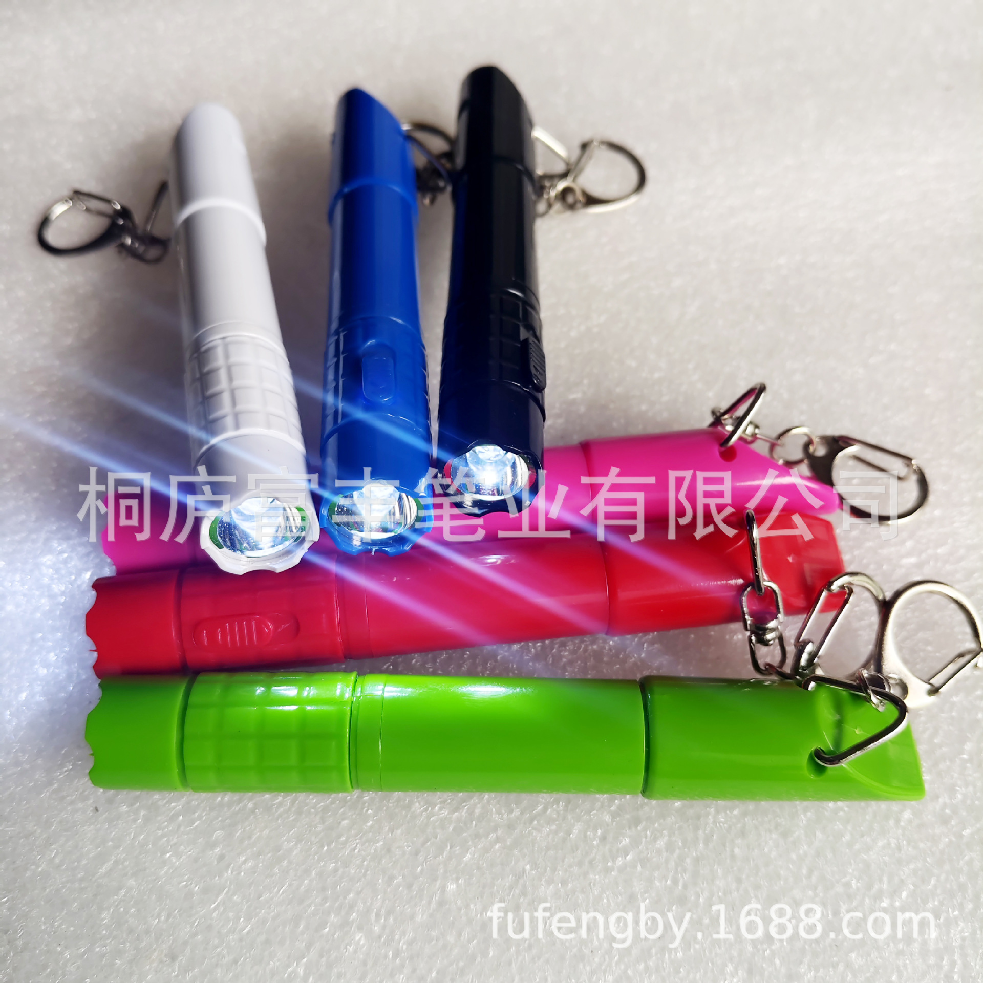 供应手电筒圆珠笔 口哨电灯LED灯笔 钥匙扣登山扣笔