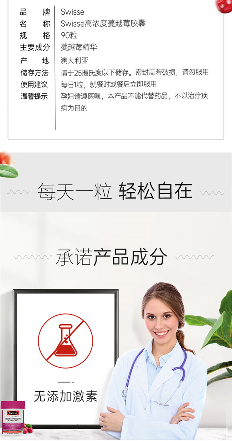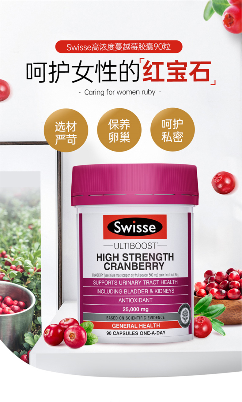 オーストラリア輸入swisseクランベリーカプセル高濃度女性婦人科泌尿卵巣保守90粒