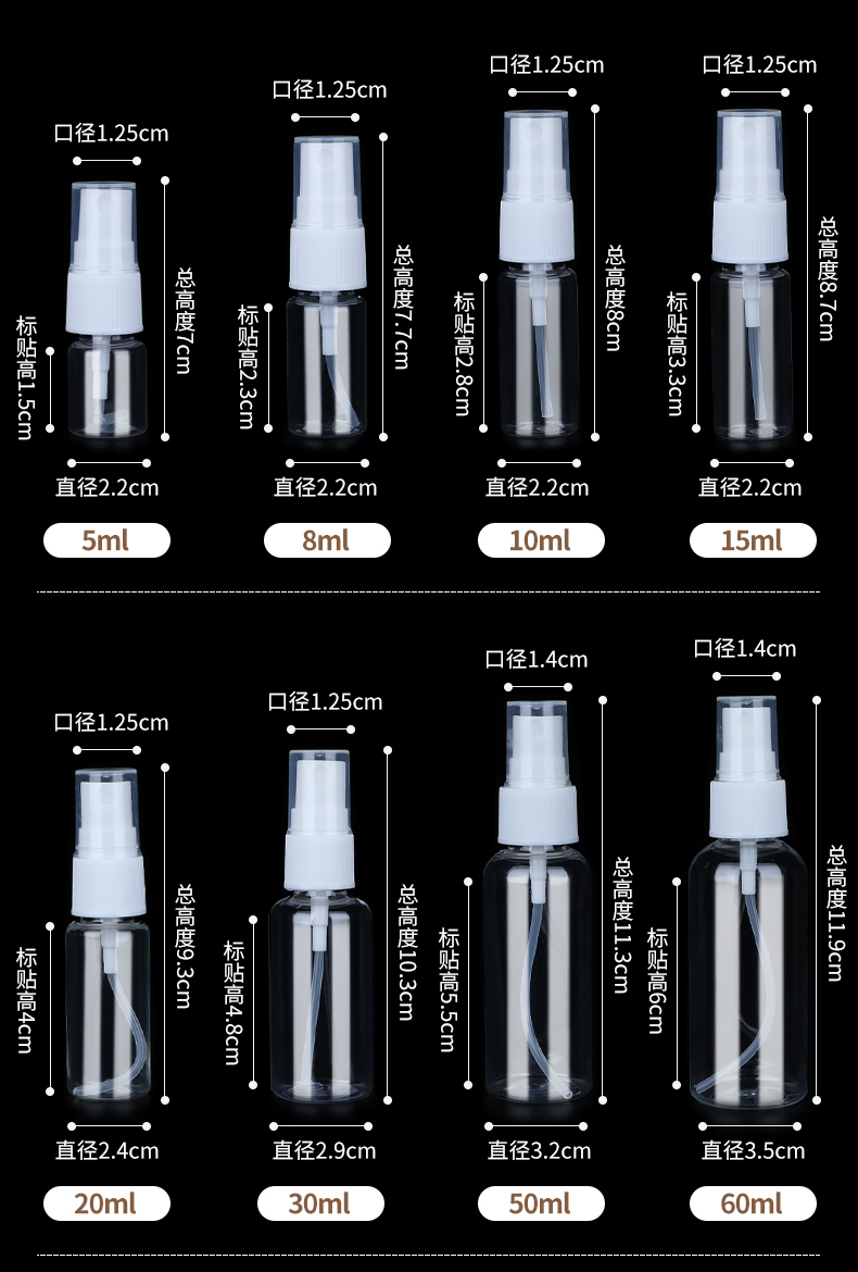 透明スプレーボトル 30ml 100ml ポータブルPETサンプルサイドスプレー香水細霧空ボトル 60ml 小型スプレーボトル