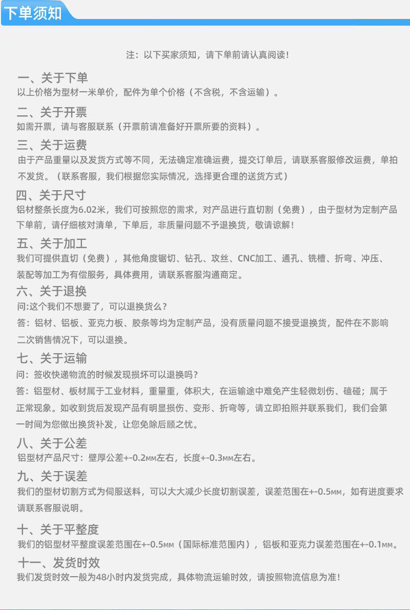 種類 アルミニウムプロファイル