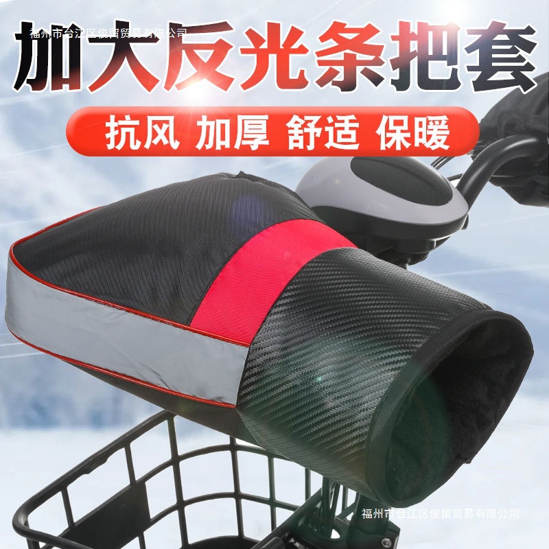 冬季摩托车把套电瓶车挡风防寒手套加绒加厚反光条电动车把套跨境