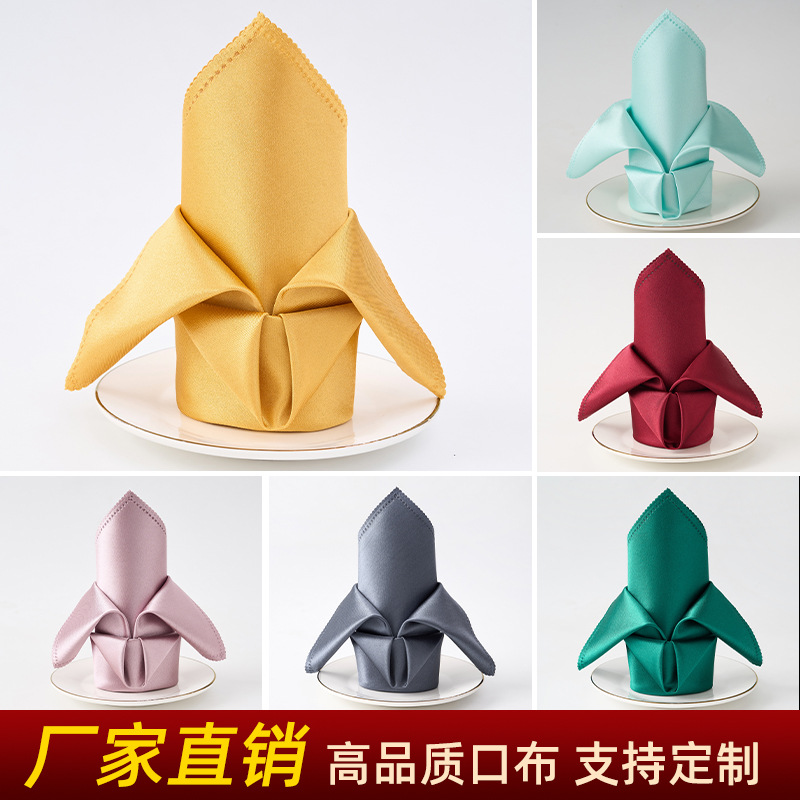酒店餐厅饭店酒楼宴会餐巾餐巾布口布细巾缎面光面折花口布贡缎