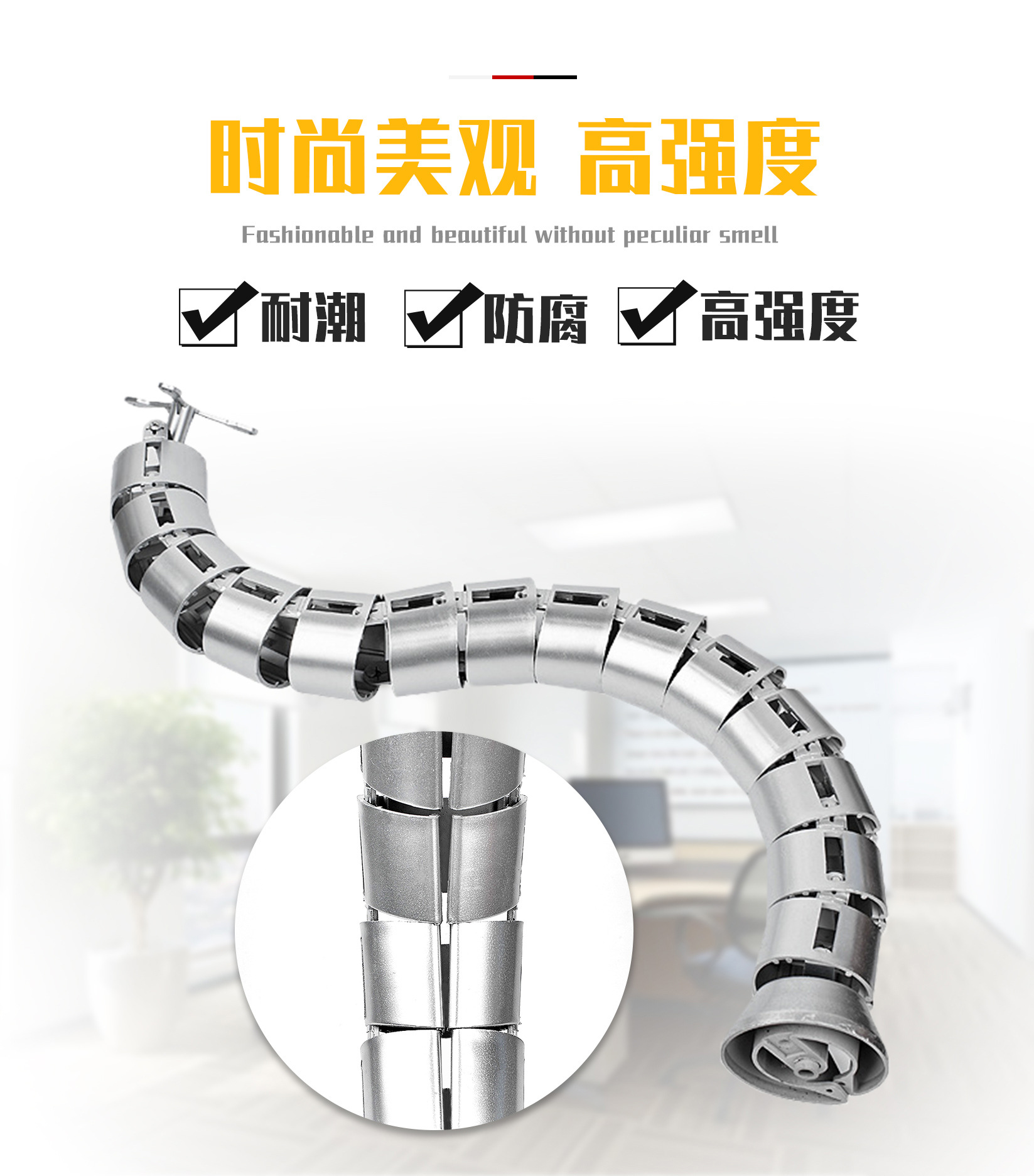 加厚ABS塑料蛇形穿线管收纳线会议室办公升降桌走线圆方型埋线管