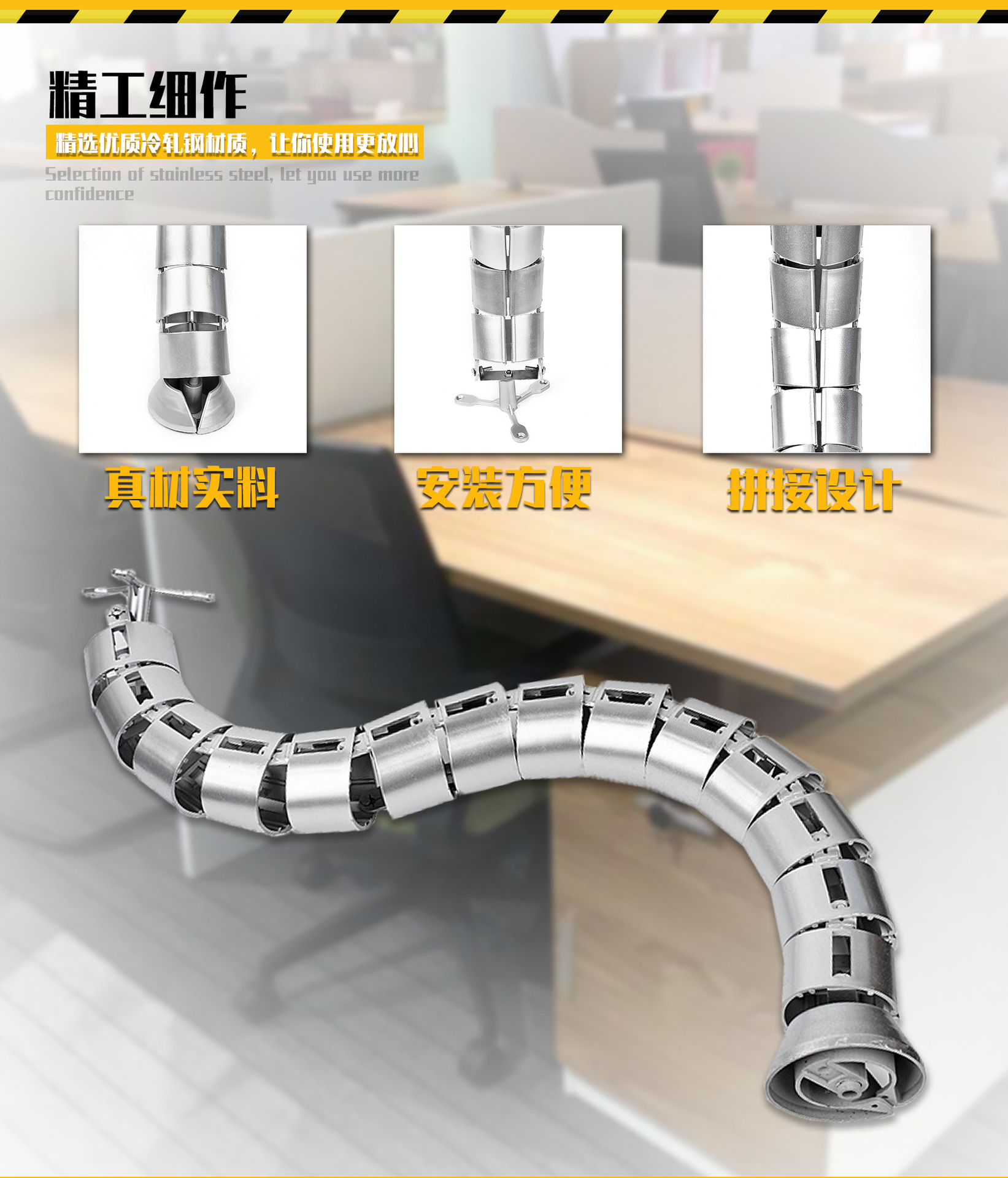 办公桌方形蛇形管穿线管会议桌走线槽升降桌底下理线器束线管