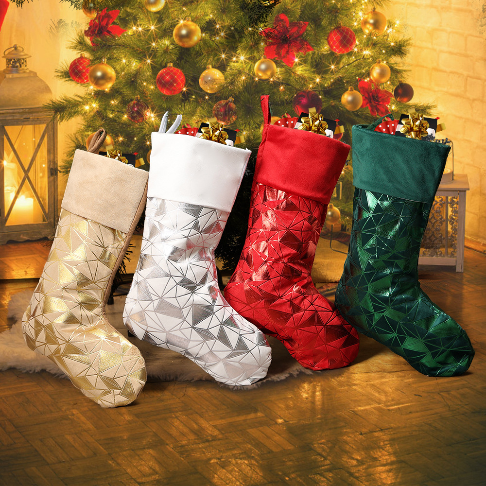 新款跨境圣诞袜礼物袋挂件装饰品 亮色闪袜圣诞树吊饰 圣诞节装饰