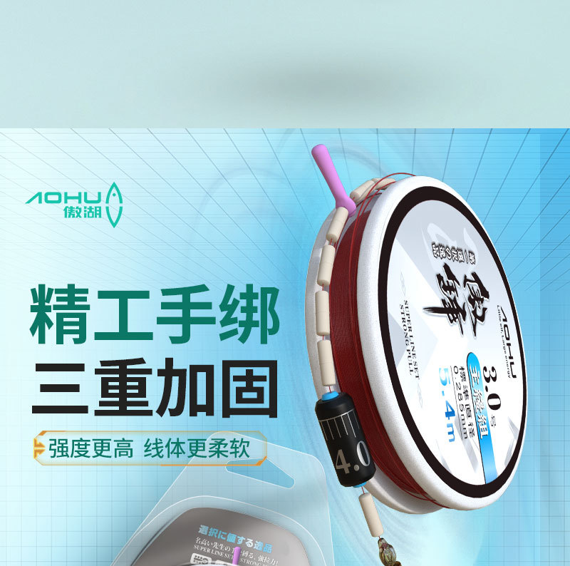 傲湖魚糸組完成品補強pe綿糸結無影双芯伏隠メインライン釣り具糸組完成品