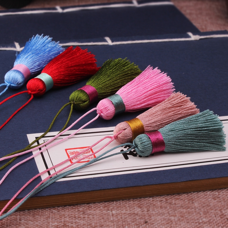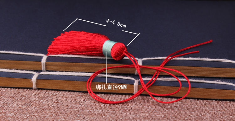 【尺寸】: 长度为4.5cm左右,绑扎处直径为9mm左右,上面吊线20cm左右 (流苏粗细相当于我们冰丝短胖流苏的一般粗细差不多)