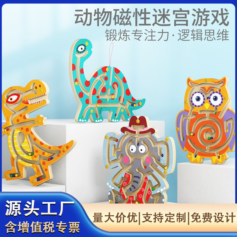子供の木製の早教の集中力類の磁気はペンを運んで迷宮の動物の形の軌道を歩きます。