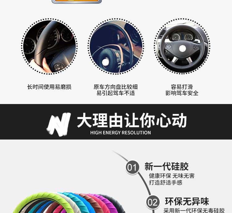 シリコン製ハンドルカバー、車用汎用シリコンスポーツハンドルカバー、メーカー直販