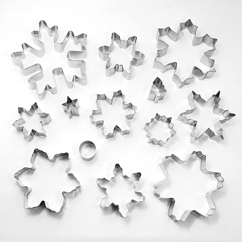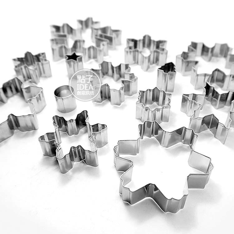 雪花の花びらのビスケットの型餅の皮は型を切ってクリスマスの饅頭の饅頭のクッキーの野菜の果物を切って型を切って包装します。