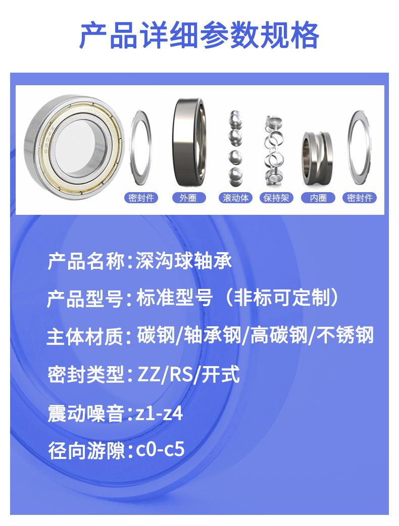 深溝玉軸受6000 6001 6002 6003 6004 6005 6006 ZZ RSモータ軸受