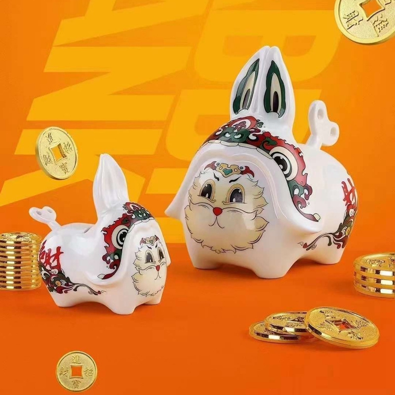招財小白兎景徳鎮陶磁器青磁彫刻プレゼント置物加工動物マスコット磁器貯金箱