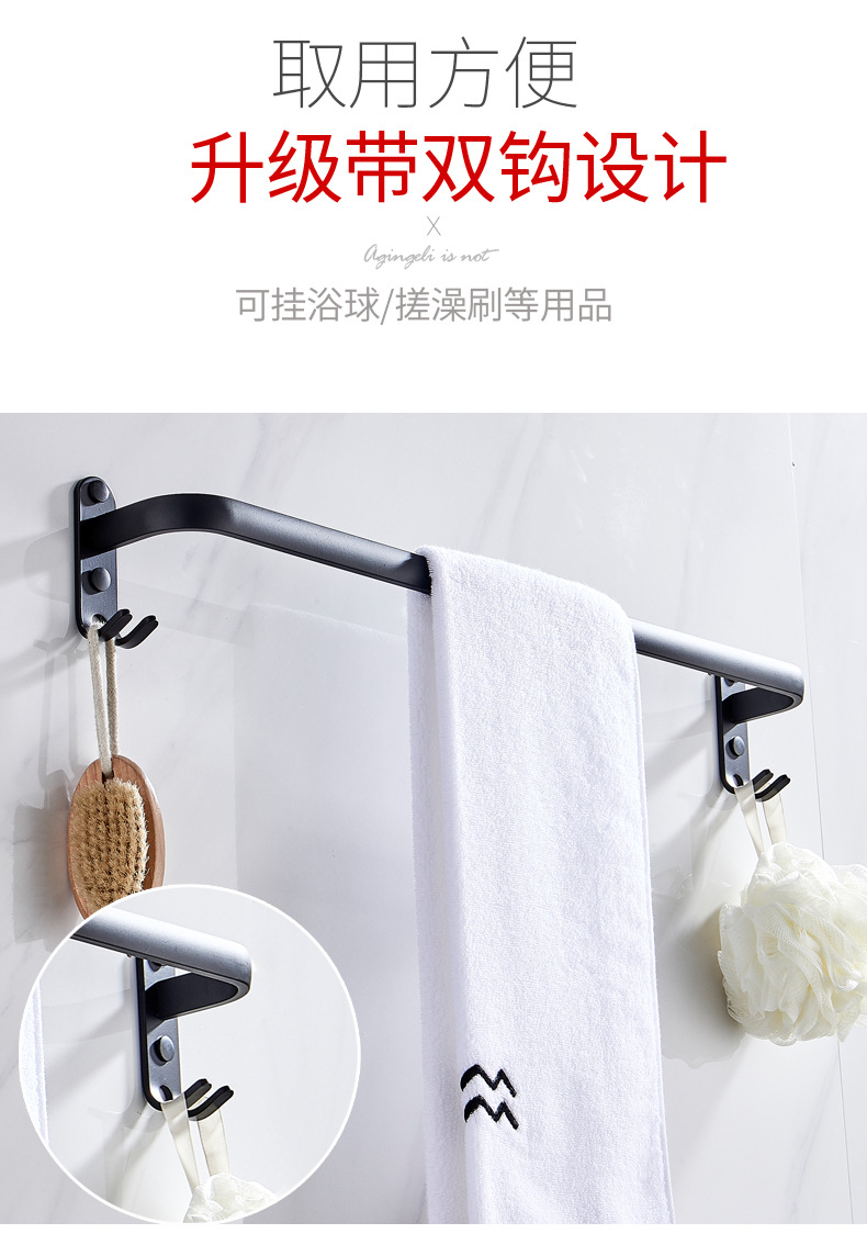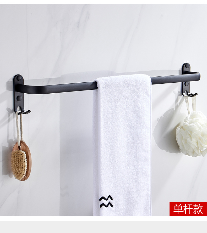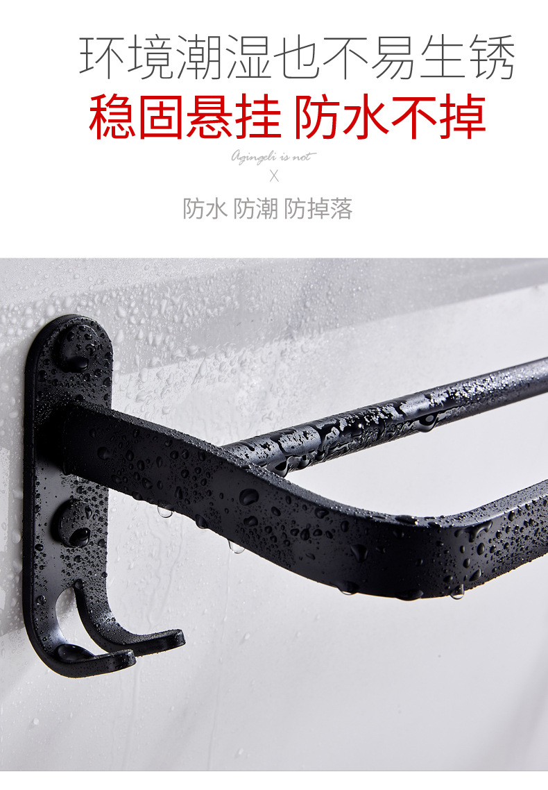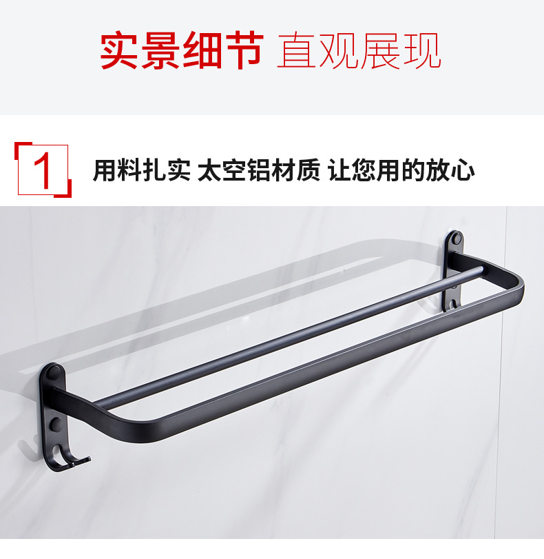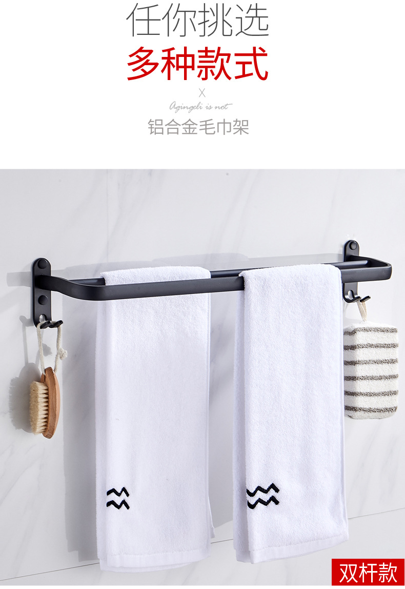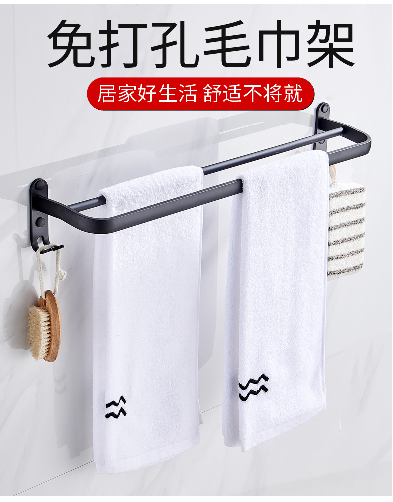 タオル掛け穴なしトイレ単棒二重棒宇宙アルミ黒色トイレ掛け棒壁掛け式浴室タオル棒