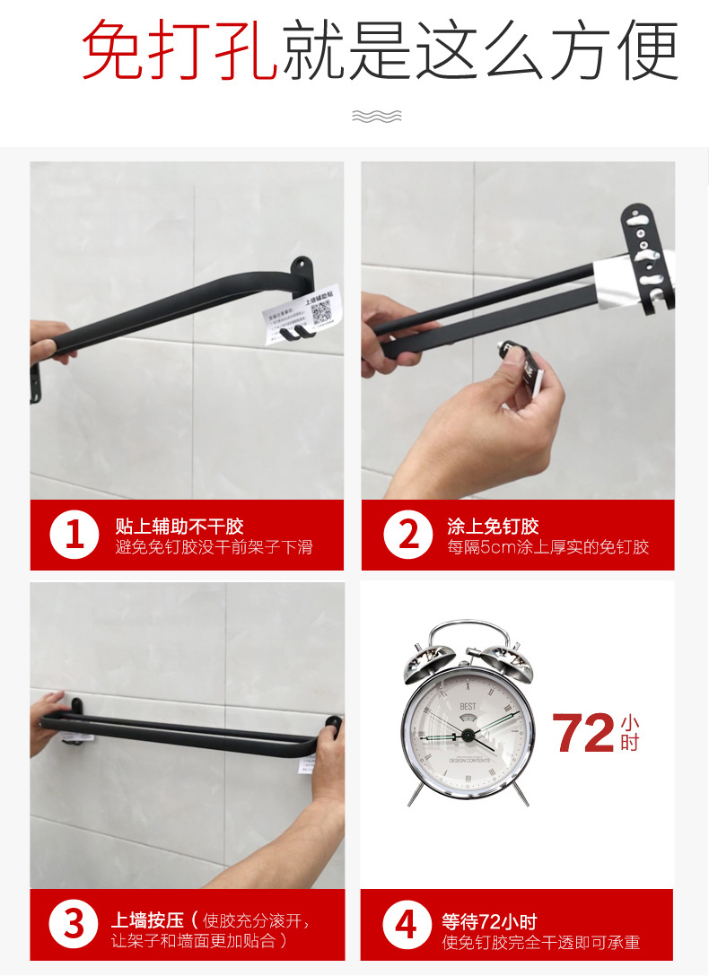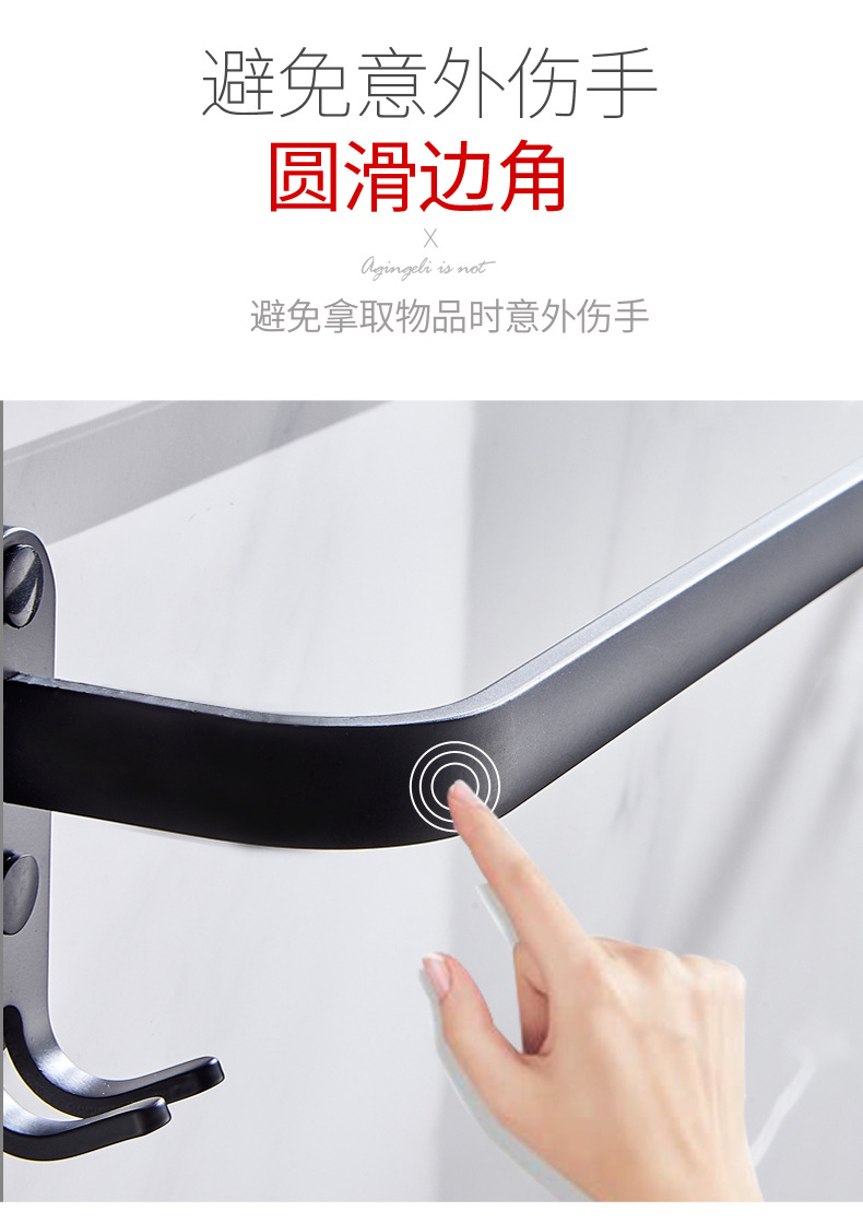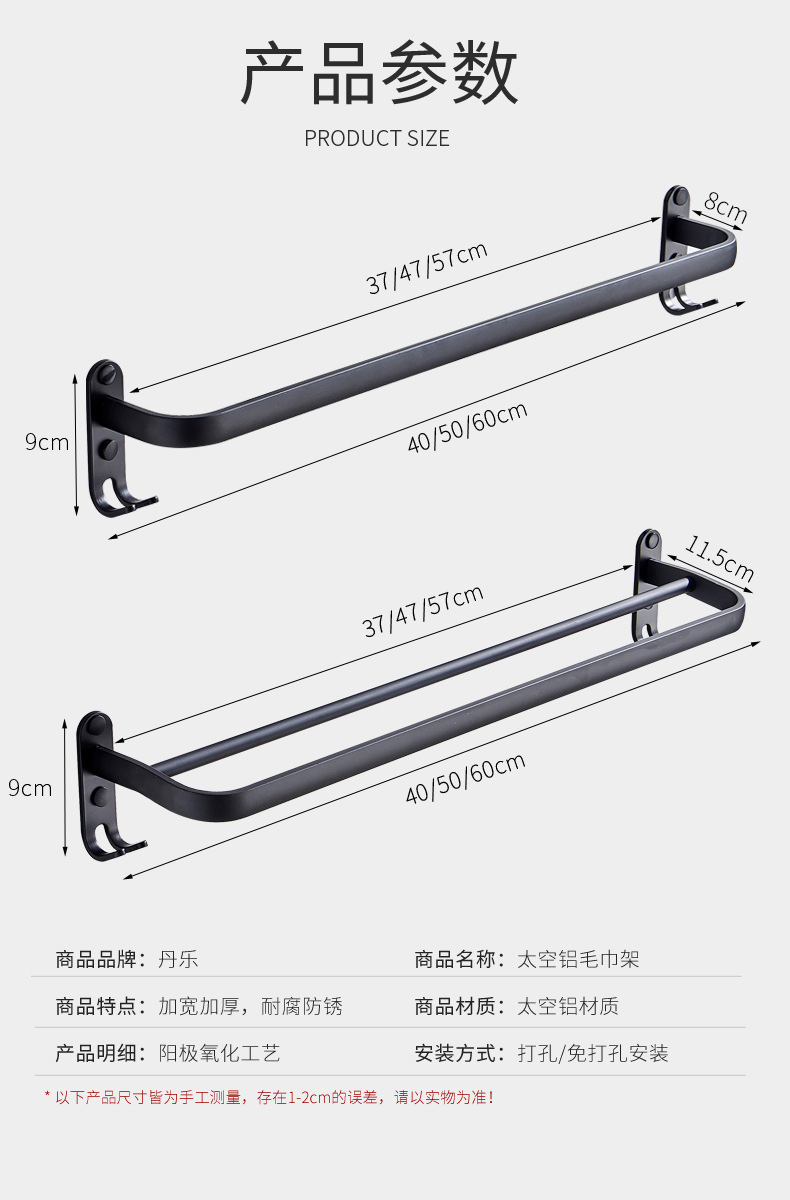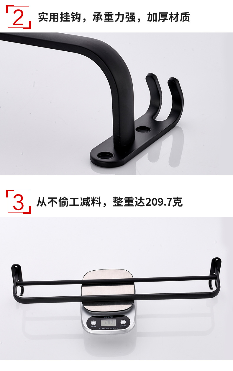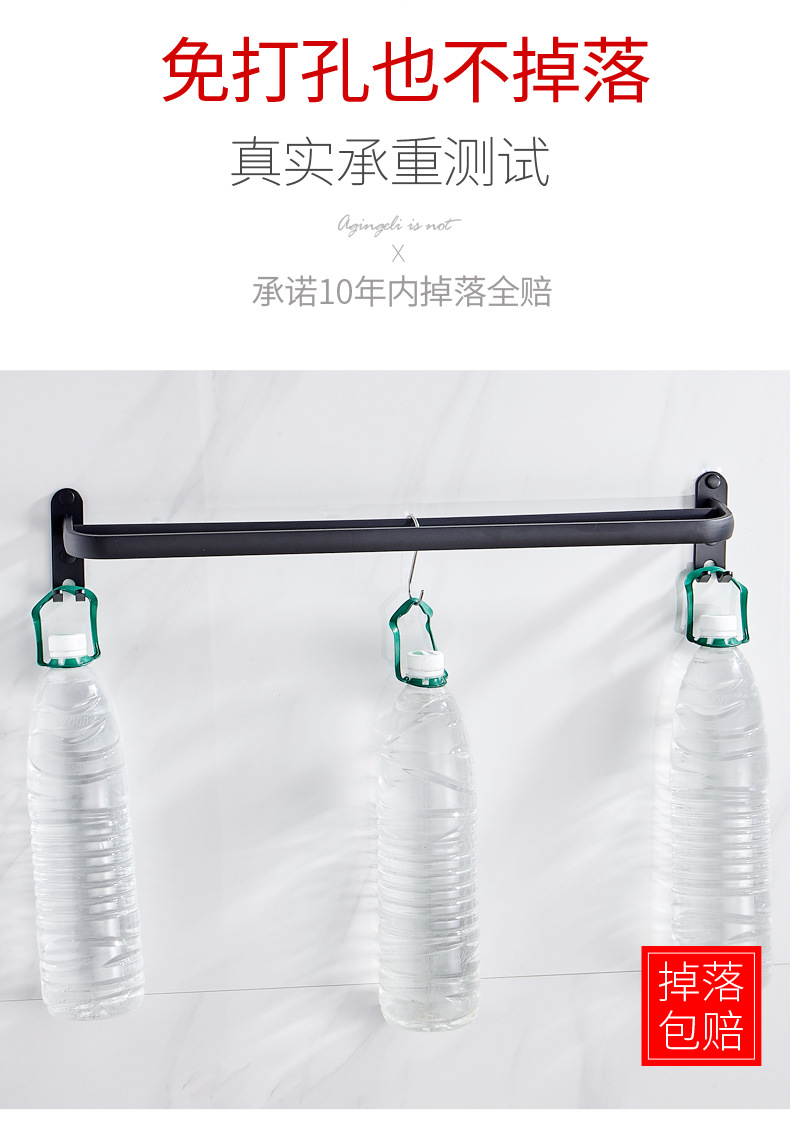 タオル掛け穴なしトイレ単棒二重棒宇宙アルミ黒色トイレ掛け棒壁掛け式浴室タオル棒