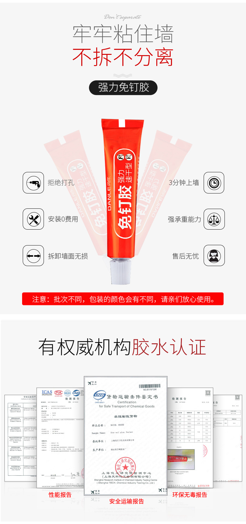 強力な釘なし万能速乾型白色防水穴なし金属接着剤ガラス接着剤卸売り接着剤