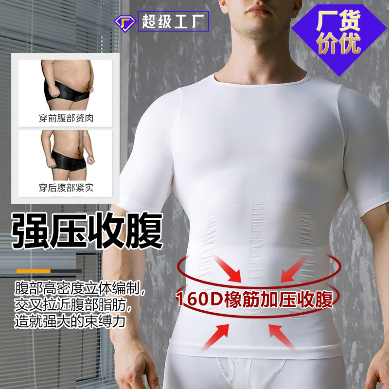 クロスボーダースリムアンドリフトボディシェイピングウェア半袖メンズコルセット胸とお腹の引き締めメーカー