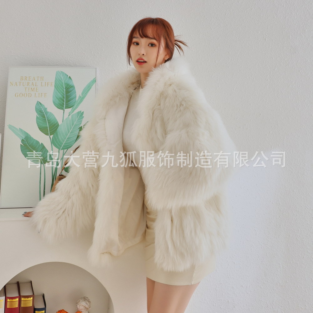 再就是山东貉子毛领。山东貉子颜色浅皮张小,毛长4公分左右,适合做窄小的毛领。毛长短,所以一方面要增加皮板宽度,要比东北貉子增加2、3公分才能达到相同的宽度。宽度增加,手把增大,看起来毛密度大。另外因为山东貉子毛领毛短,所以毛能支撑,看起来精神。