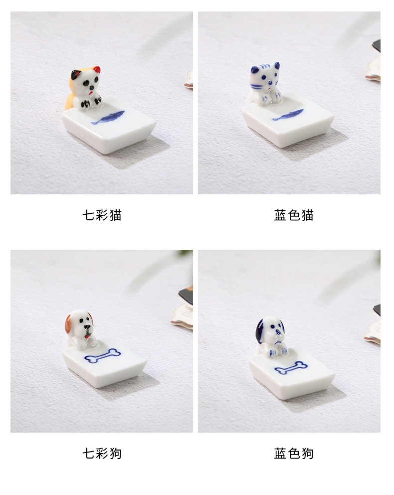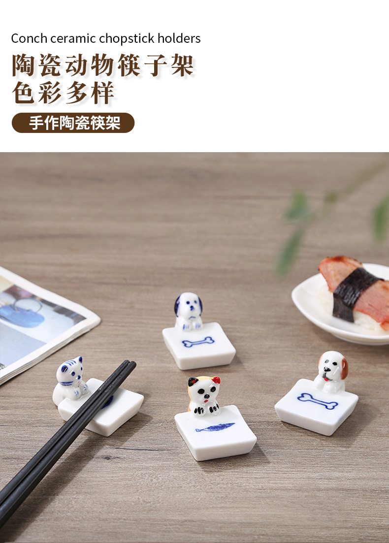卡通陶瓷小猫鱼盘筷子托筷枕家用餐桌工艺品小摆件小狗骨头盘筷架