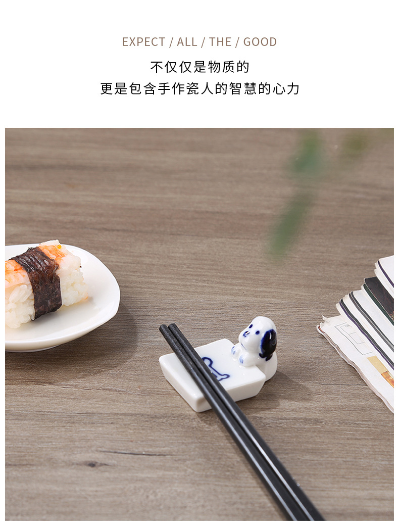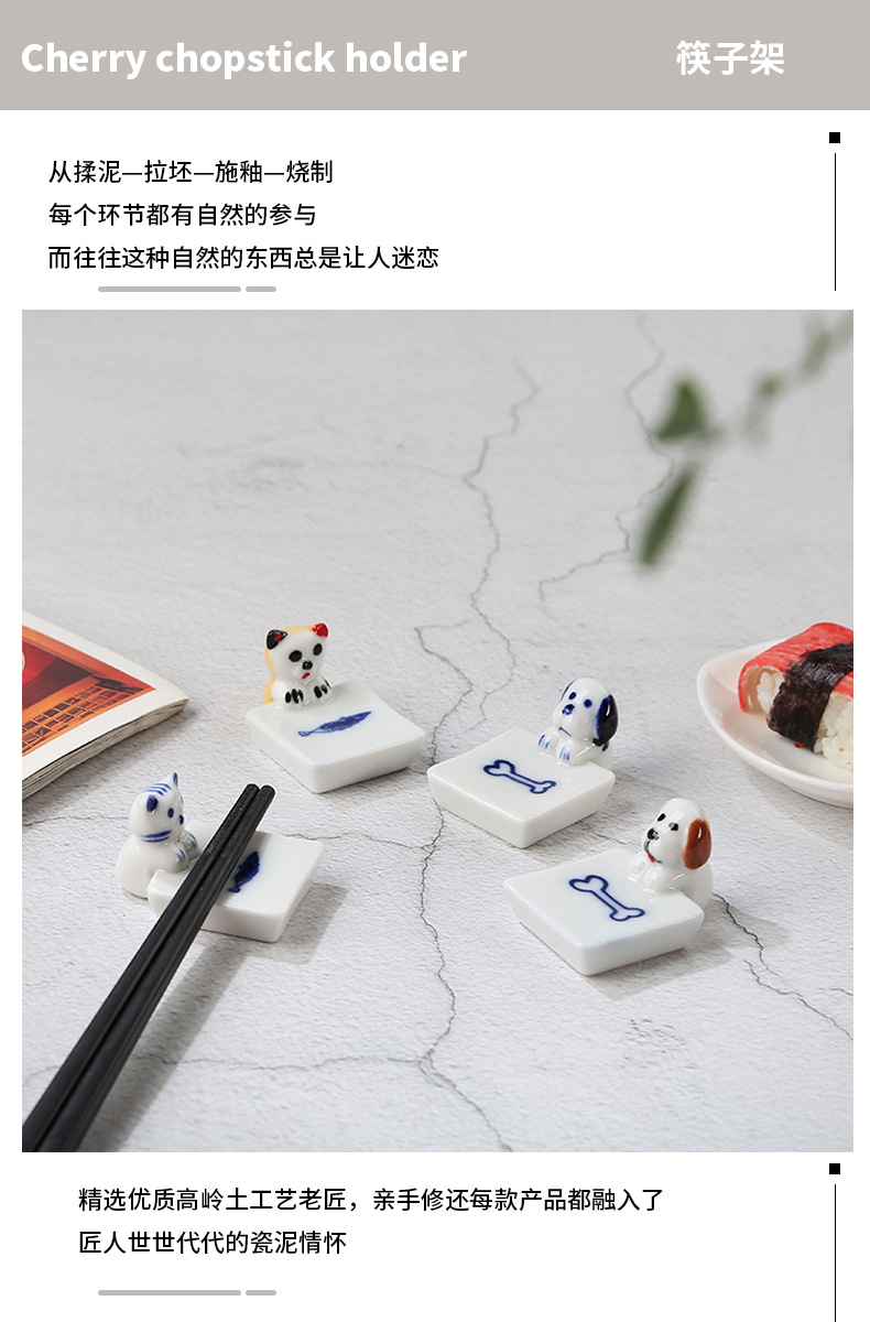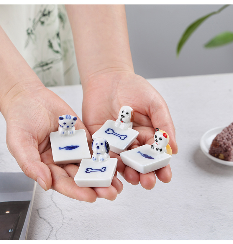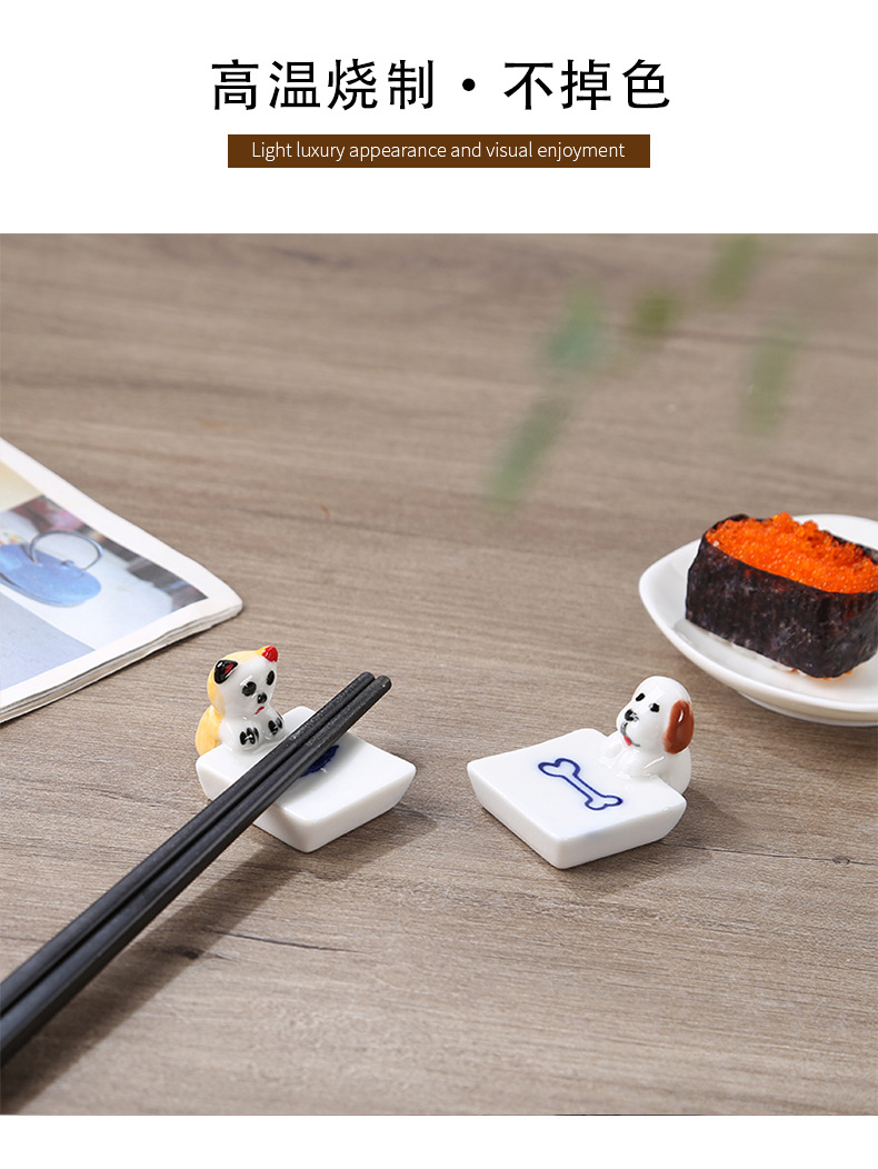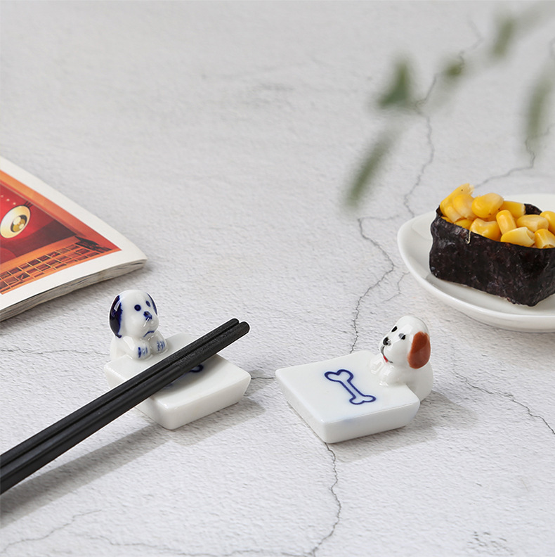 子犬の陶磁器の置物日本式の家庭用箸棚ソーセージ犬箸托箸枕かわいい犬箸托ペンホルダー