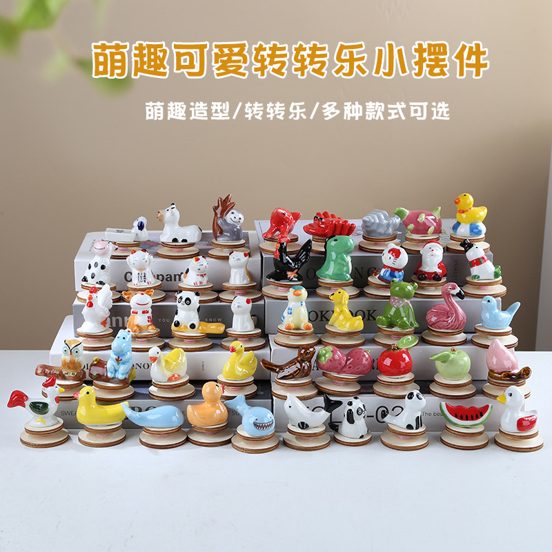 陶瓷转转乐小动物摆件摆地摊网红卡通旋转桌面装饰品儿童生日礼物
