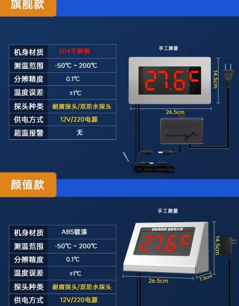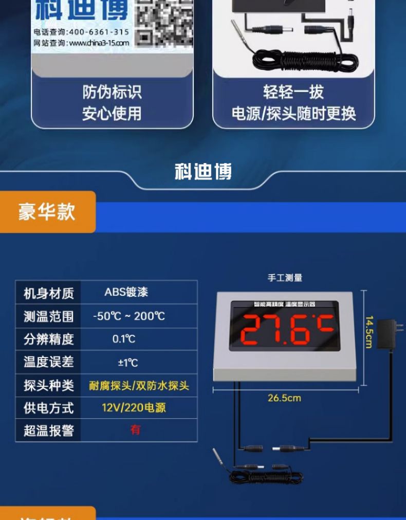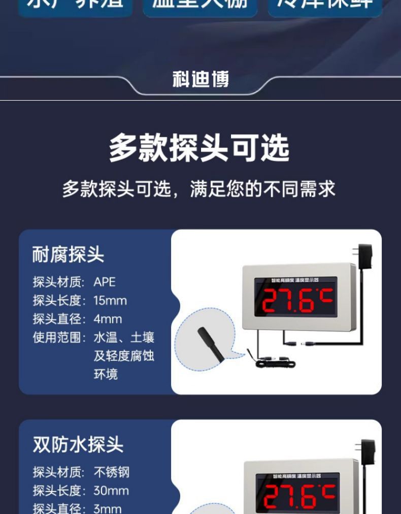 大画面温度表示器プローブ付き水槽冷凍庫工業水温大画面泡池温水温度表示器