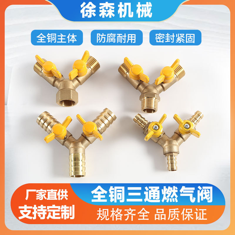 Y型三方バルブ真鍮ガス三方継手ガス管分気スイッチ液化ガス三方ボール弁
